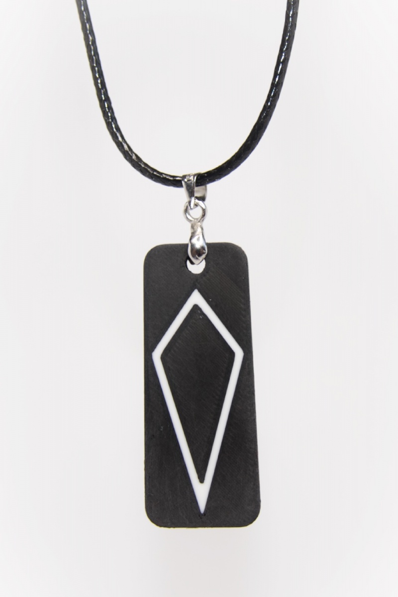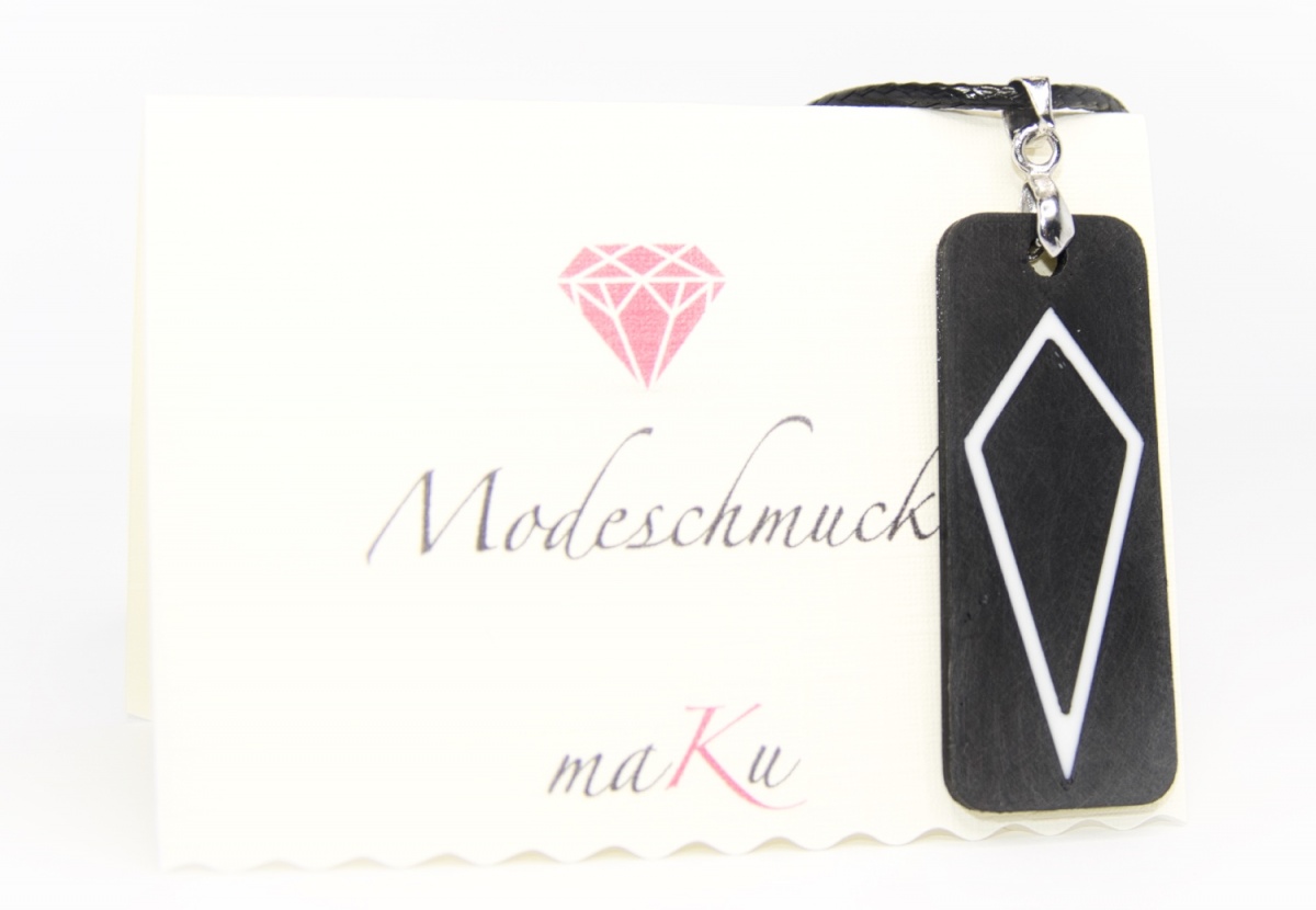 Anhänger: ca. 41 mm x 16 mm; 2 mm hoch; PLA Farbe: Schwarz; Harz Farbe: Weiß
