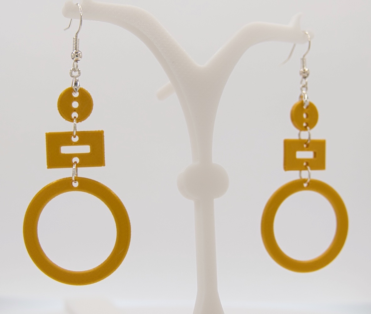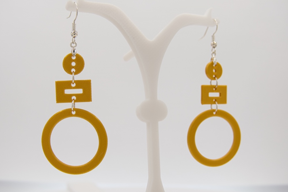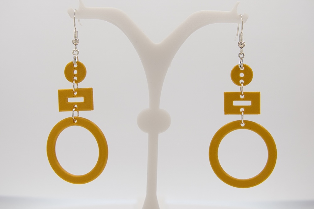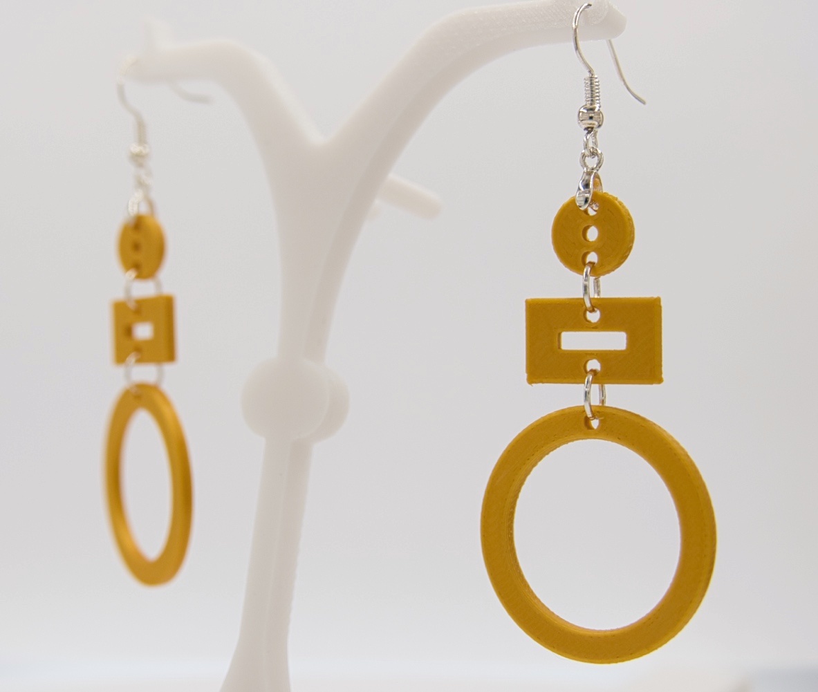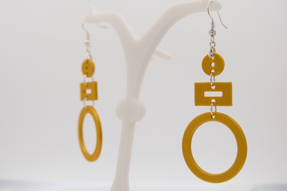 Ein Paar 3D-Druck-Ohrringe in einem tollen Goldton.