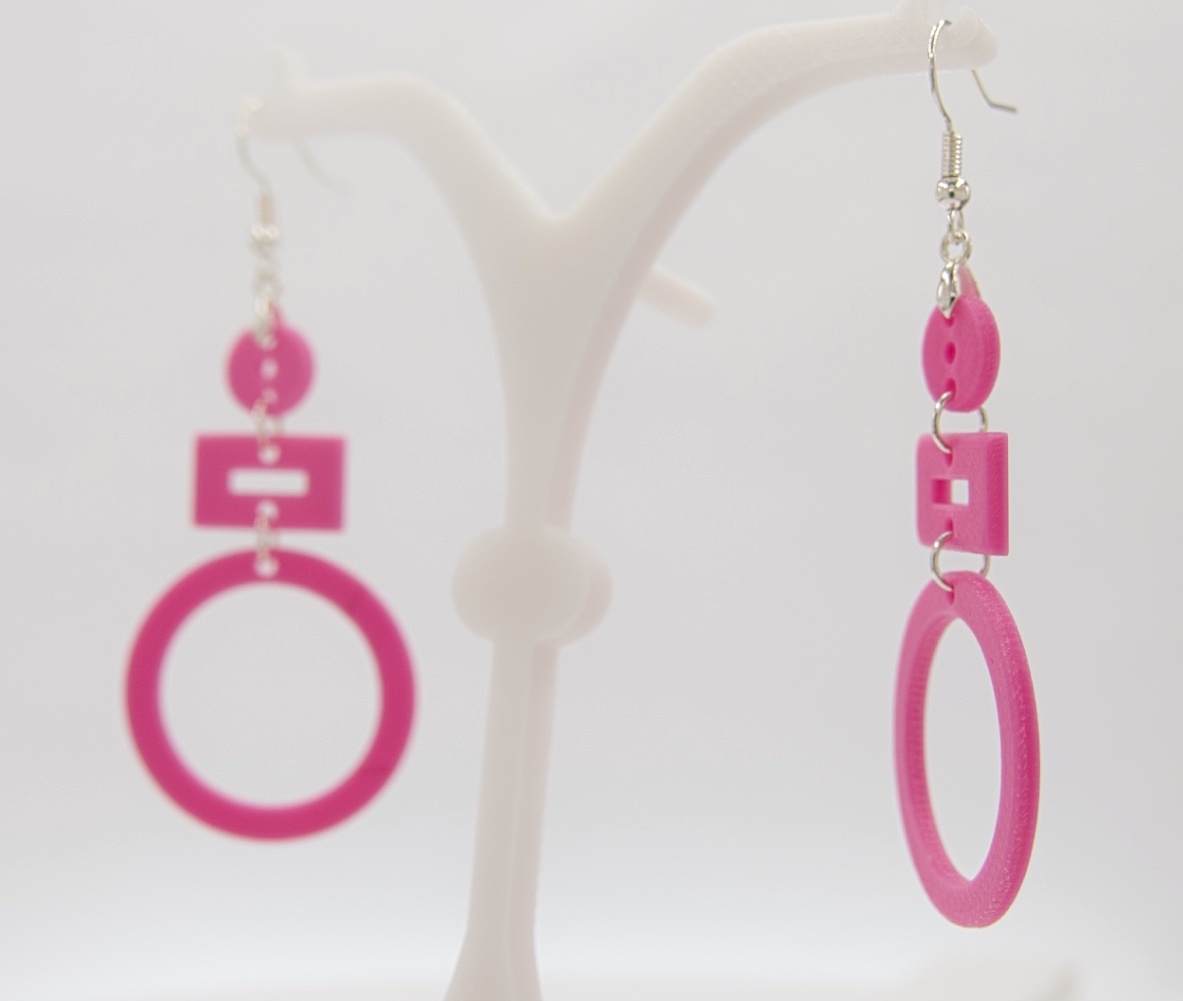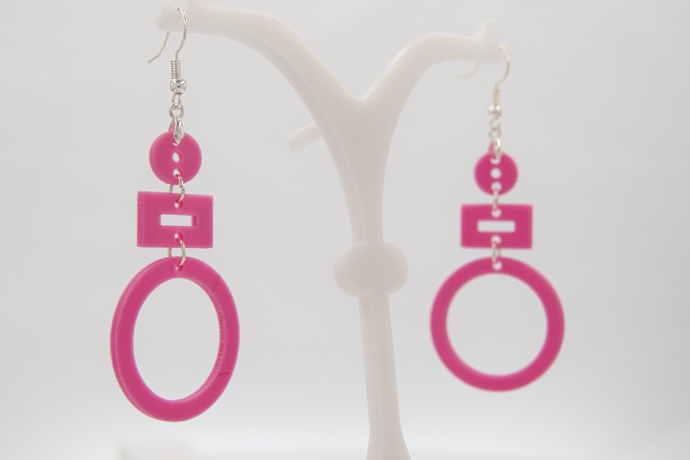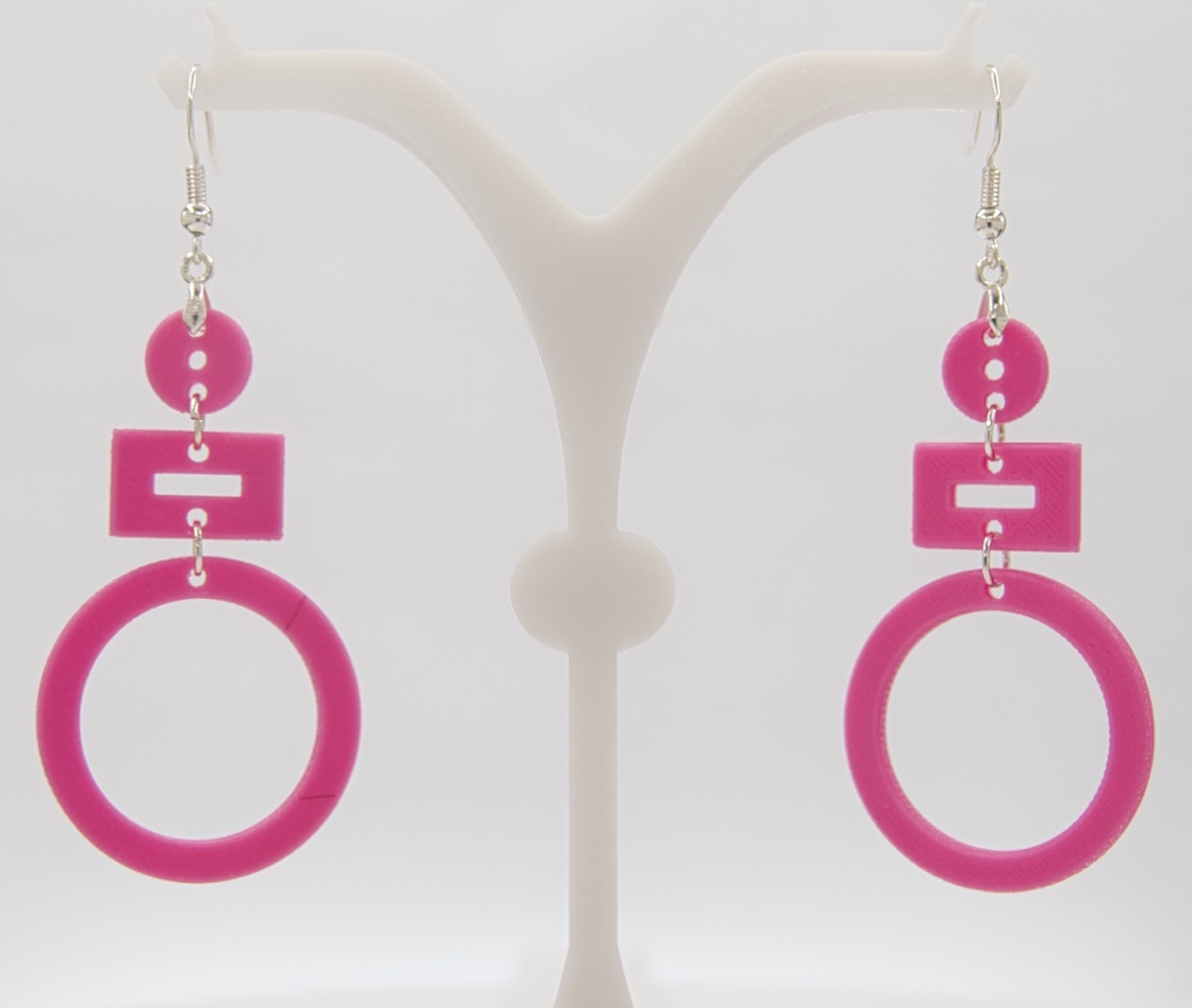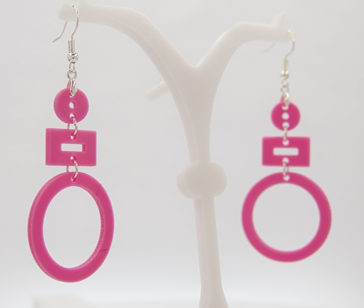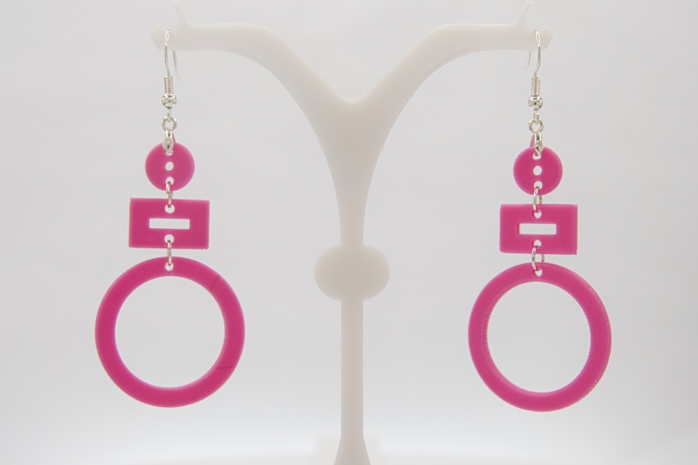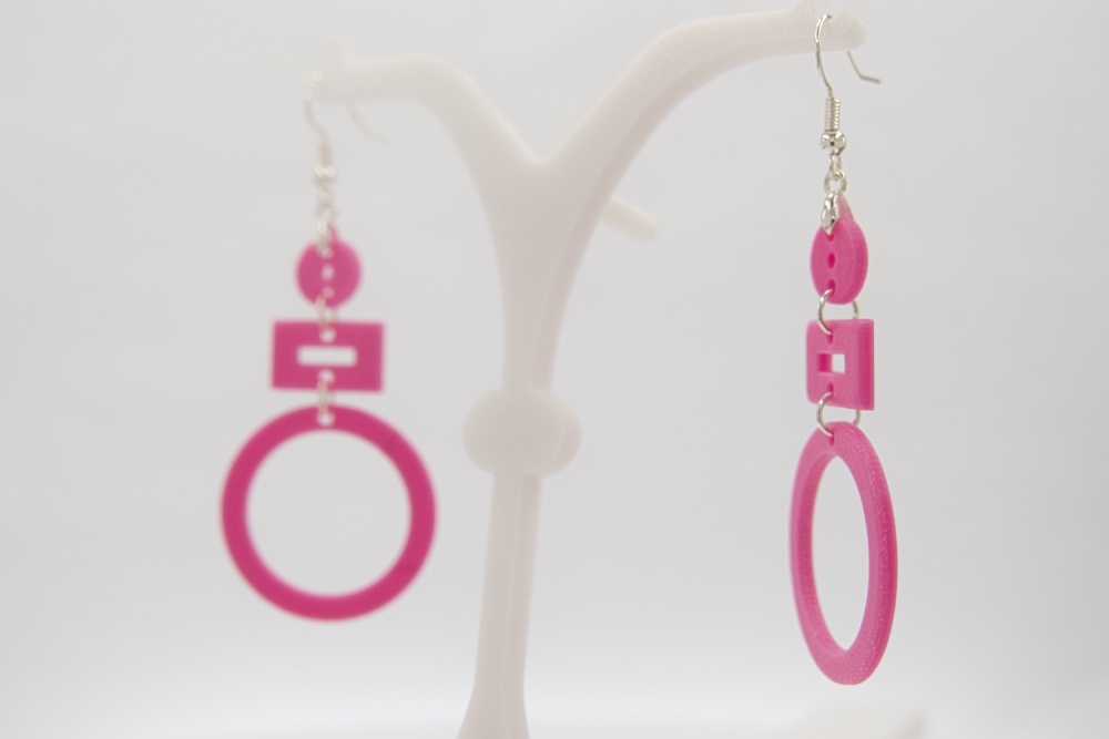 Ein Paar 3D-Druck-Ohrringe in einem wunderschönen Pink.