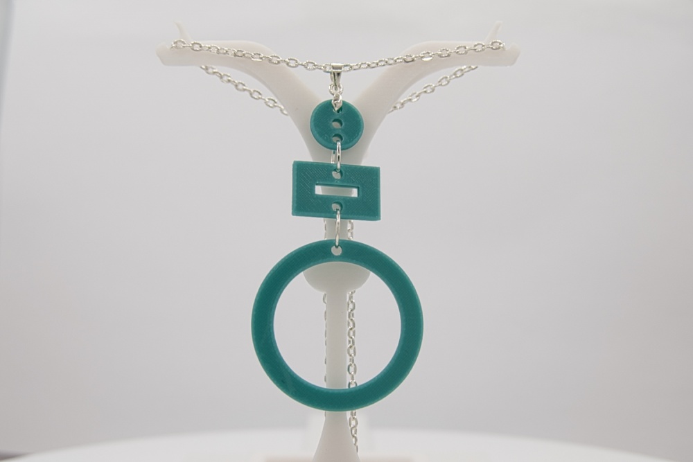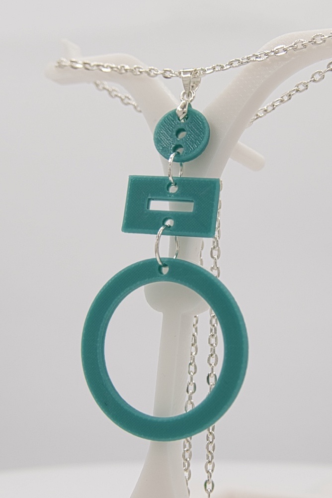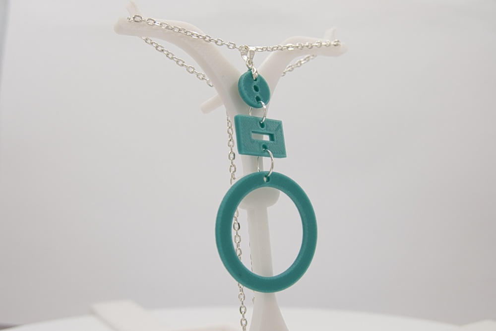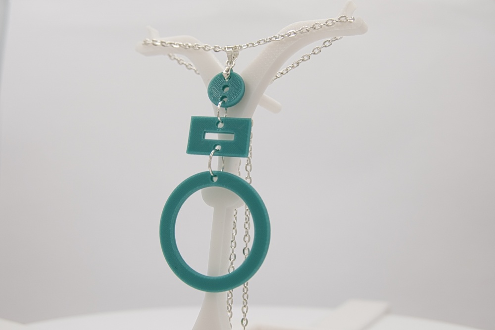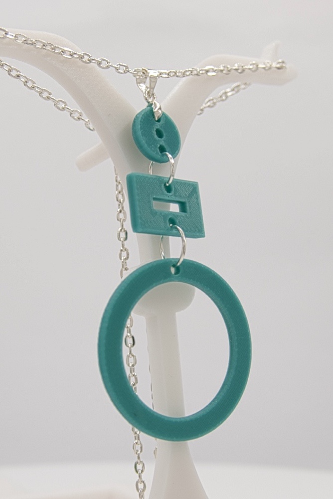 Der Anhänger hat ein modernes Design, wurde mit dem 3D-Drucker hergestellt und hat eine leichte Struktur.