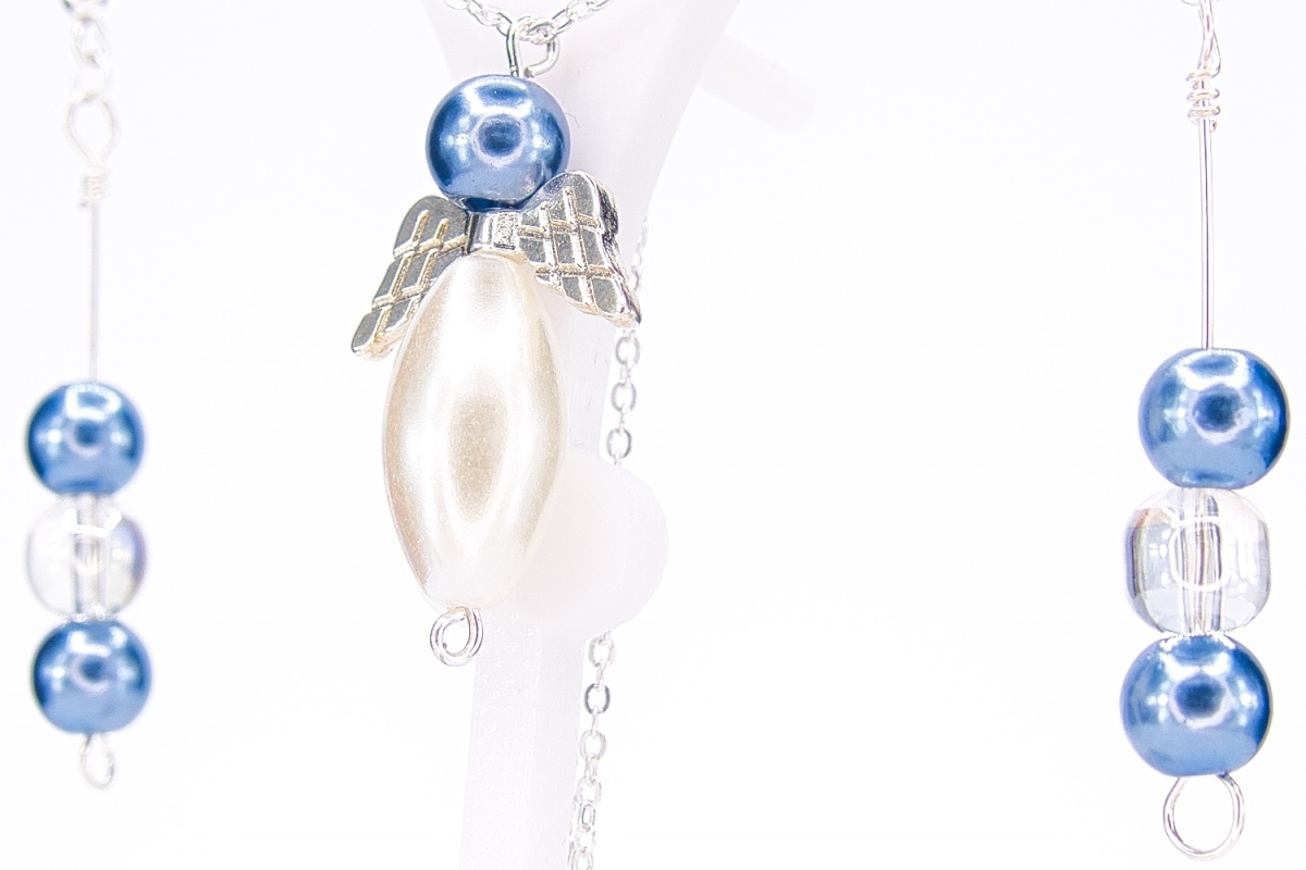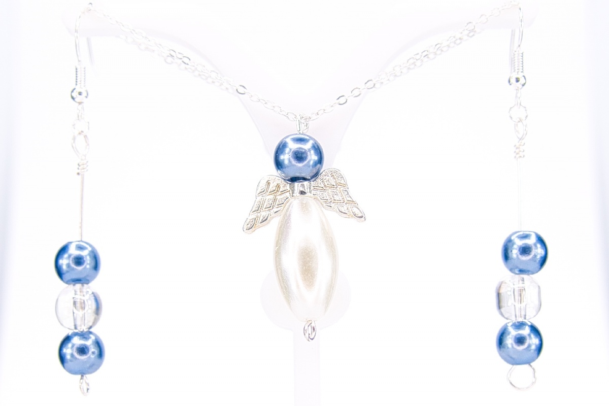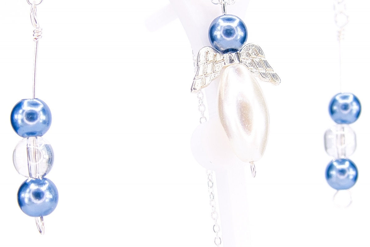Engel Set Blau & Weiß Kleinserie (Halskette & Ohrringe): 45 cm