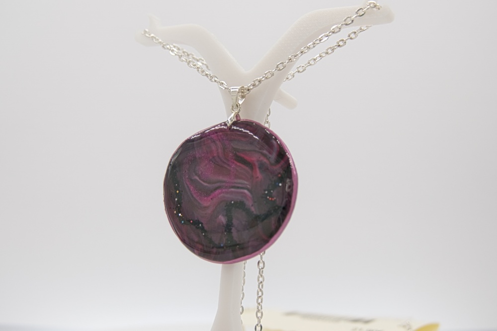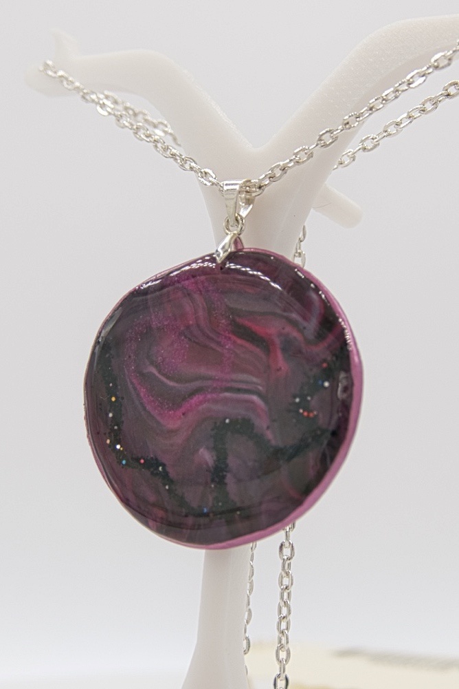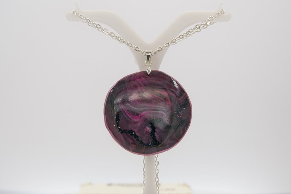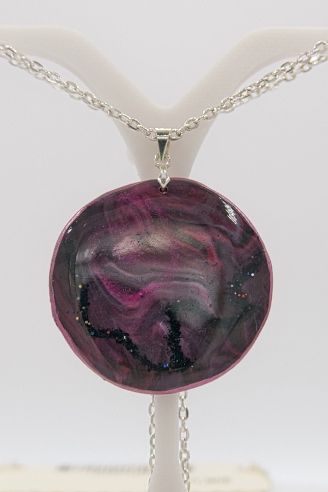 Anhänger: Durchmesser ca. 38 mm; Modelliermasse Farbe: Rosa, Schwarz, Grau, Glitzer