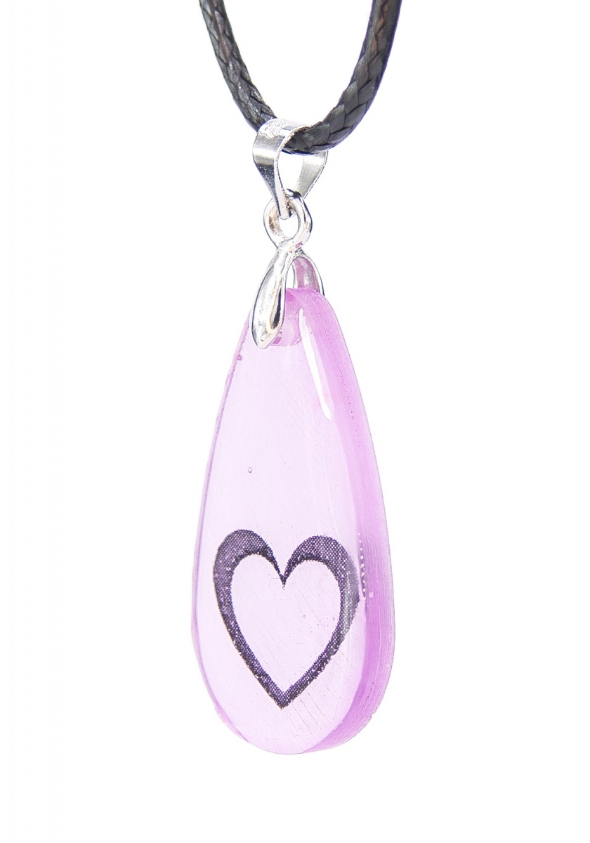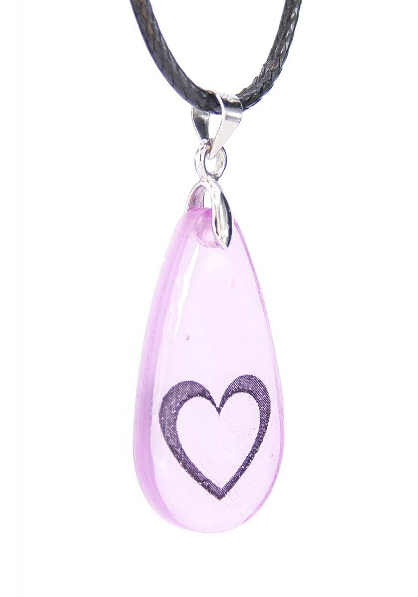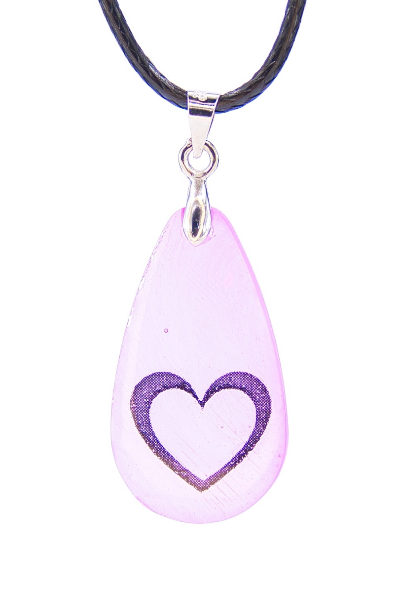 Diese schöne, tropfenförmige Halskette zeigt ein Herz.