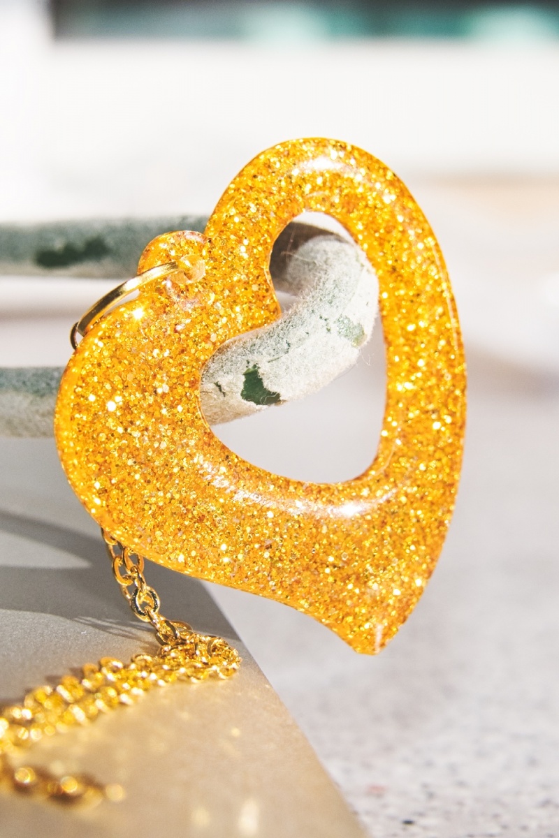 Anhänger: ca. 30 mm x 30 mm; 3 mm hoch; Farbe: Goldglitzer